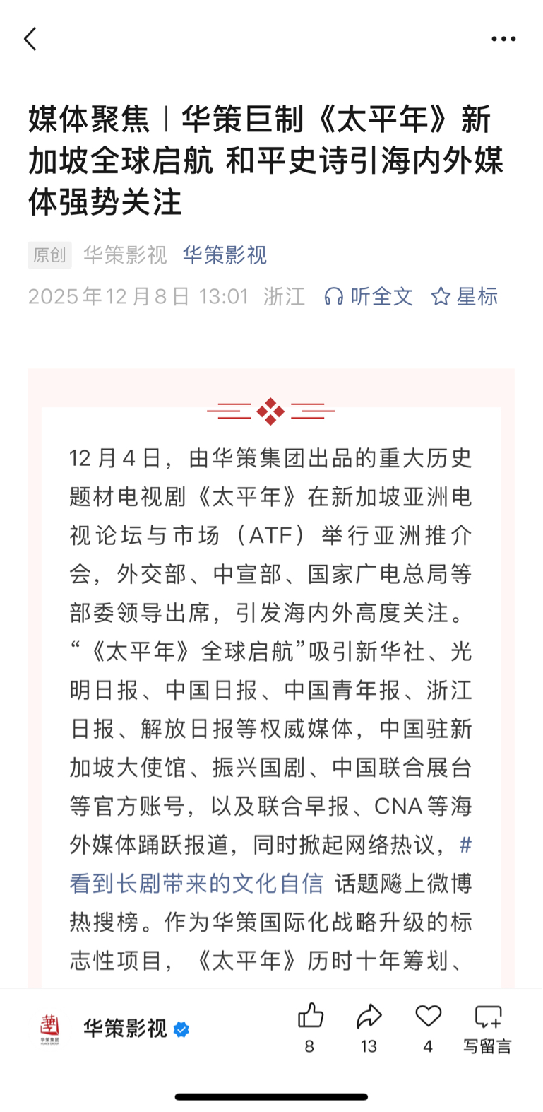 $华策影视(SZ300133)$ 华策巨制"太平年"