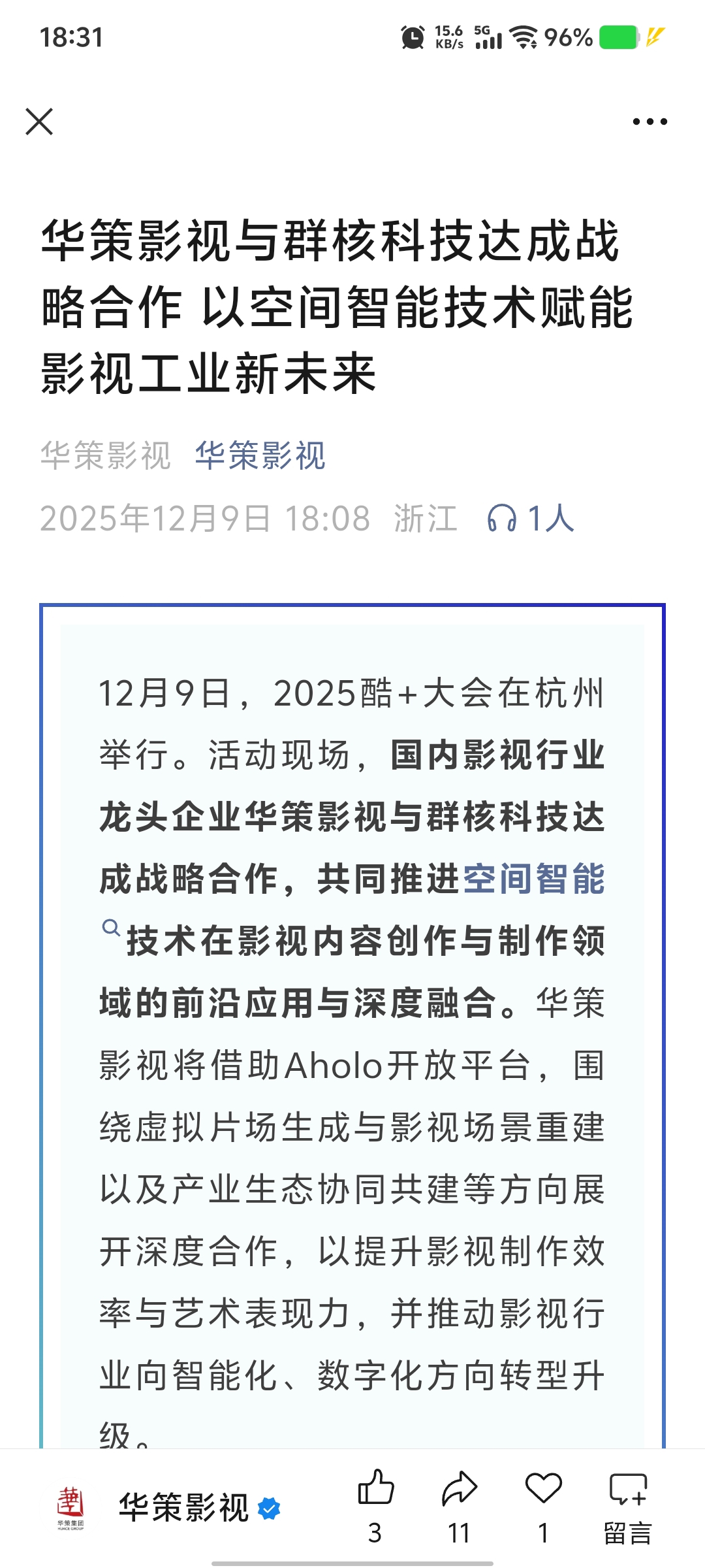 华策影视与群核科技达成战略合作以空间智能技术赋能影视工业新未来