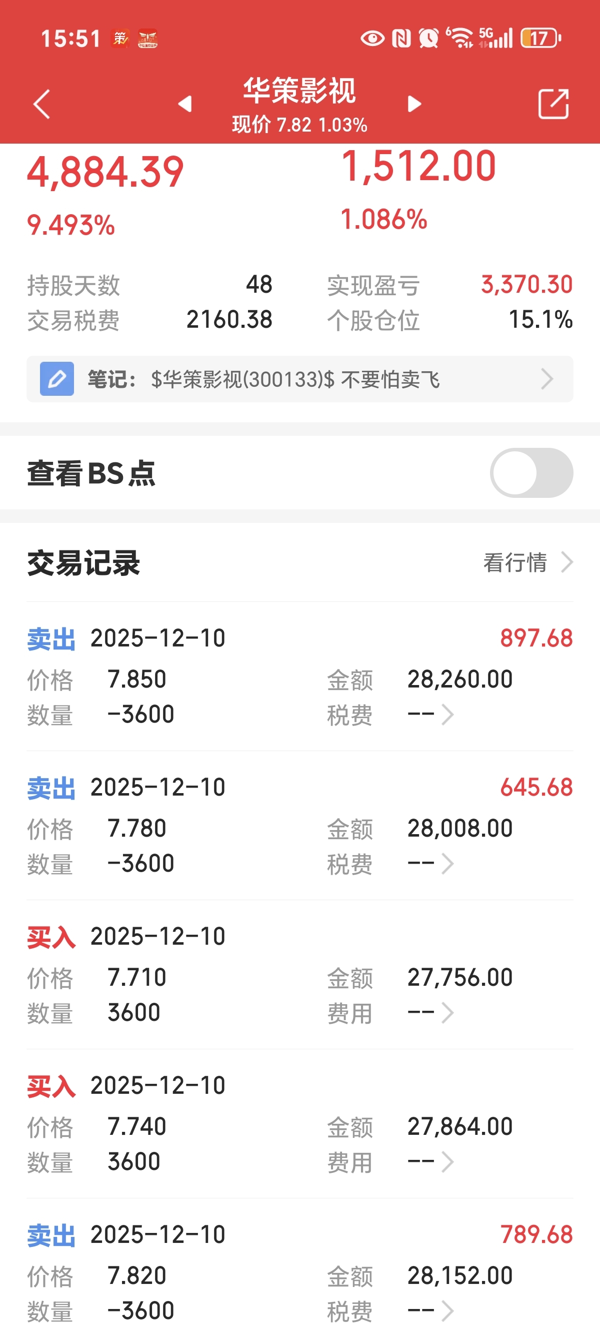 $华策影视(SZ300133)$ 一直做踢,成本从九块多到现在还可以,以后冲高继续高抛,回调再加仓。大把仓位闲着呢。