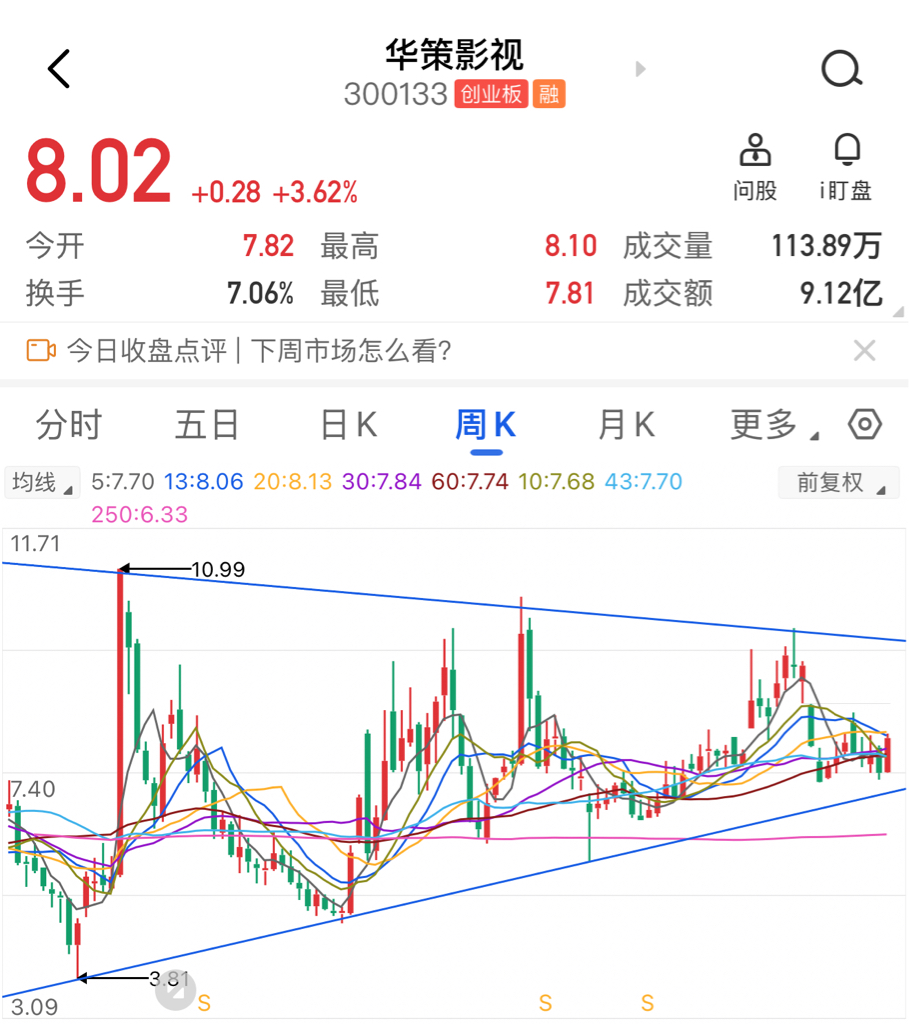 $华策影视(SZ300133)$ 这个周线阳包阴是真漂亮呀