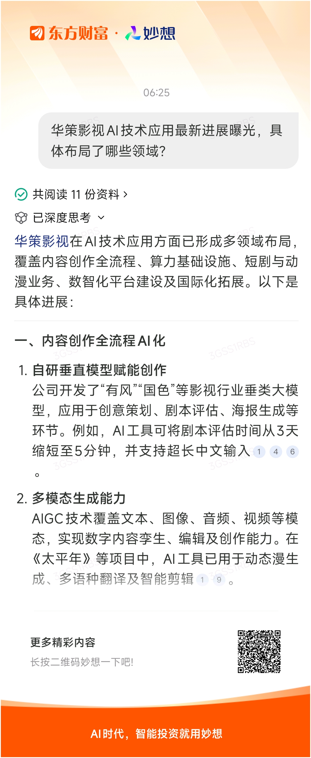 #@妙想,你怎么看?# 妙想一下:华策影视AI技术应用最新进展曝光,具体布局了哪些领域?