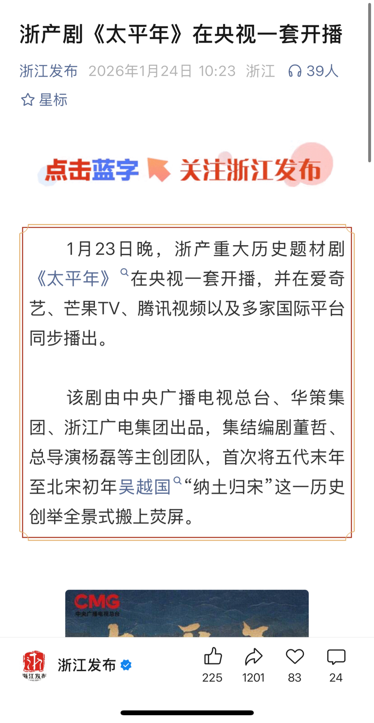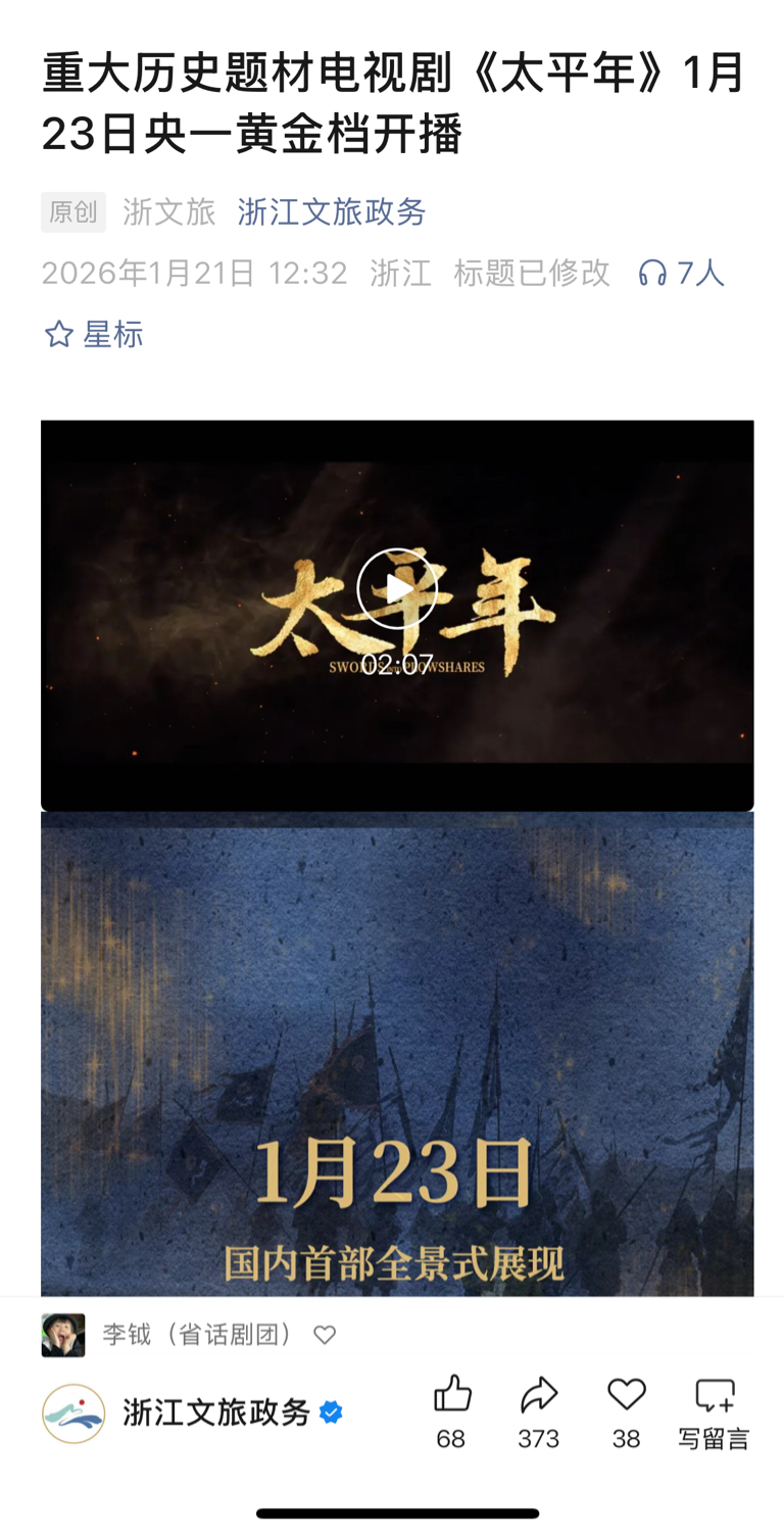 看浙江各地官媒是怎么宣传《太平年》!史无前例!