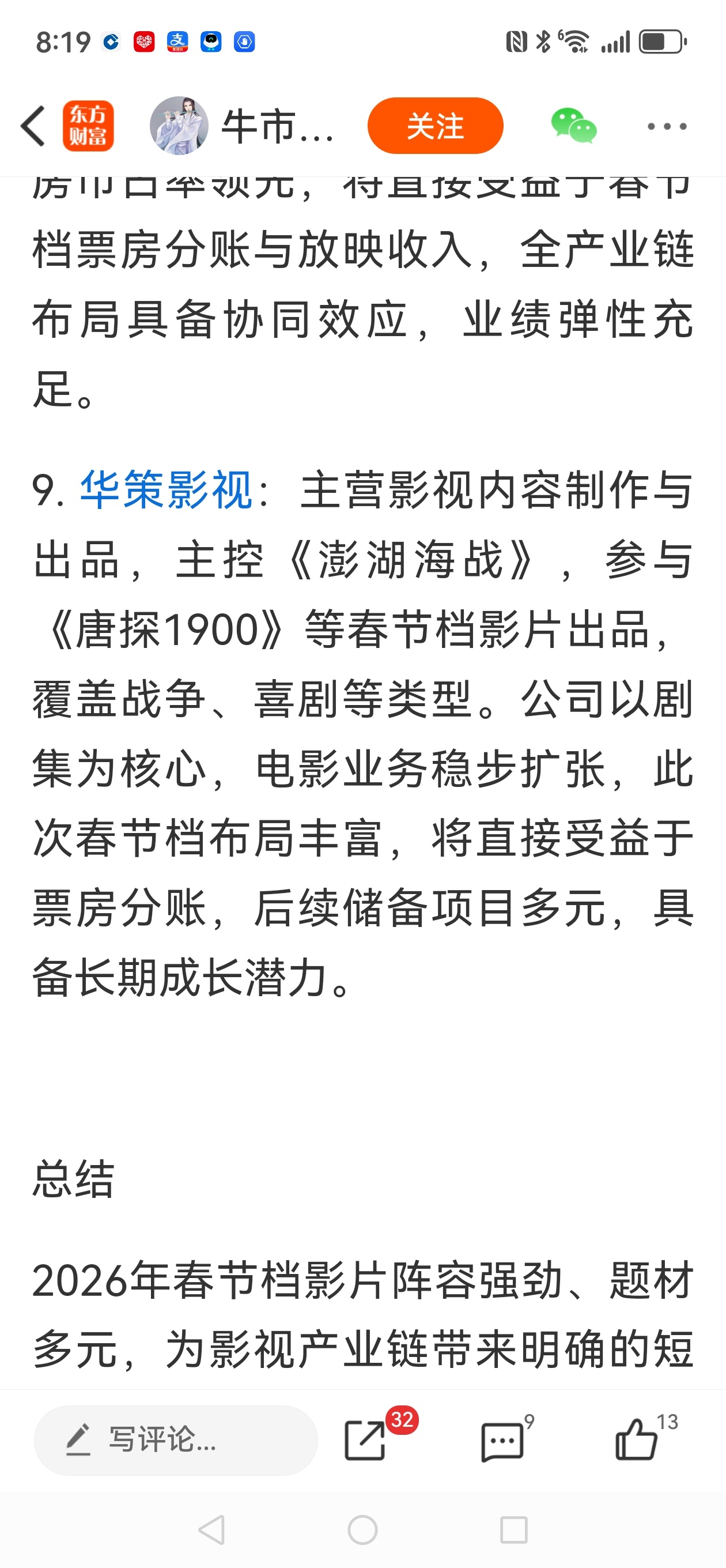 $华策影视(SZ300133)$ 刚刚看到华策影视参与春节档澎湖海战的片子