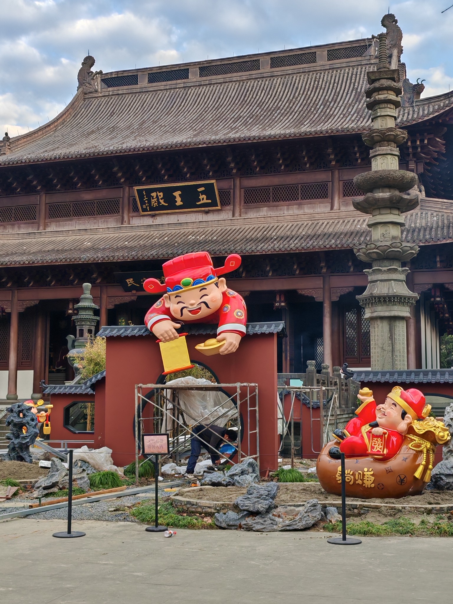钱王祠的财神爷还没修好