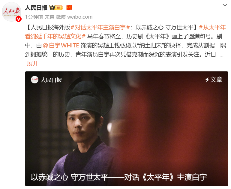 人民日报海外版#对话太平年主演白宇#:以赤诚之心 守万世太平