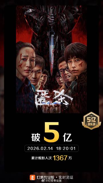 据灯塔专业版实时数据,截至2月14日18时20分,影片《匿杀》票房突破5亿。