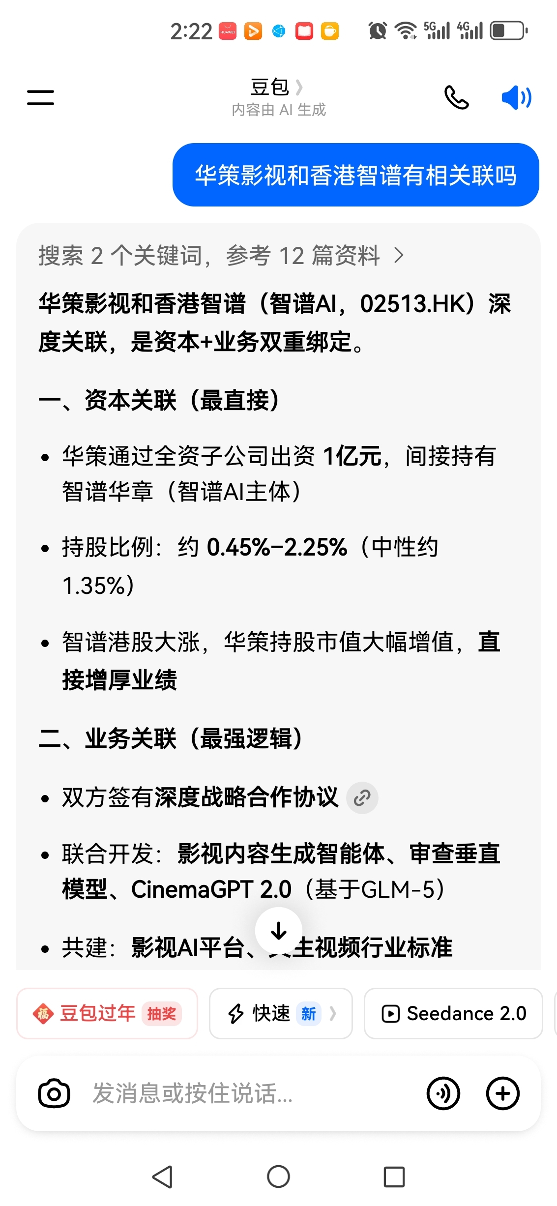 香港智谱大涨,华策影视,参股了一个亿,豆包搜一下。