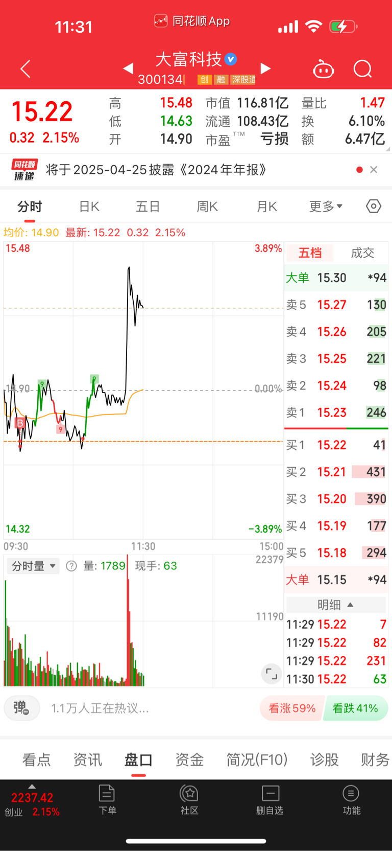 $大富科技(SZ300134)$ 成功抄底