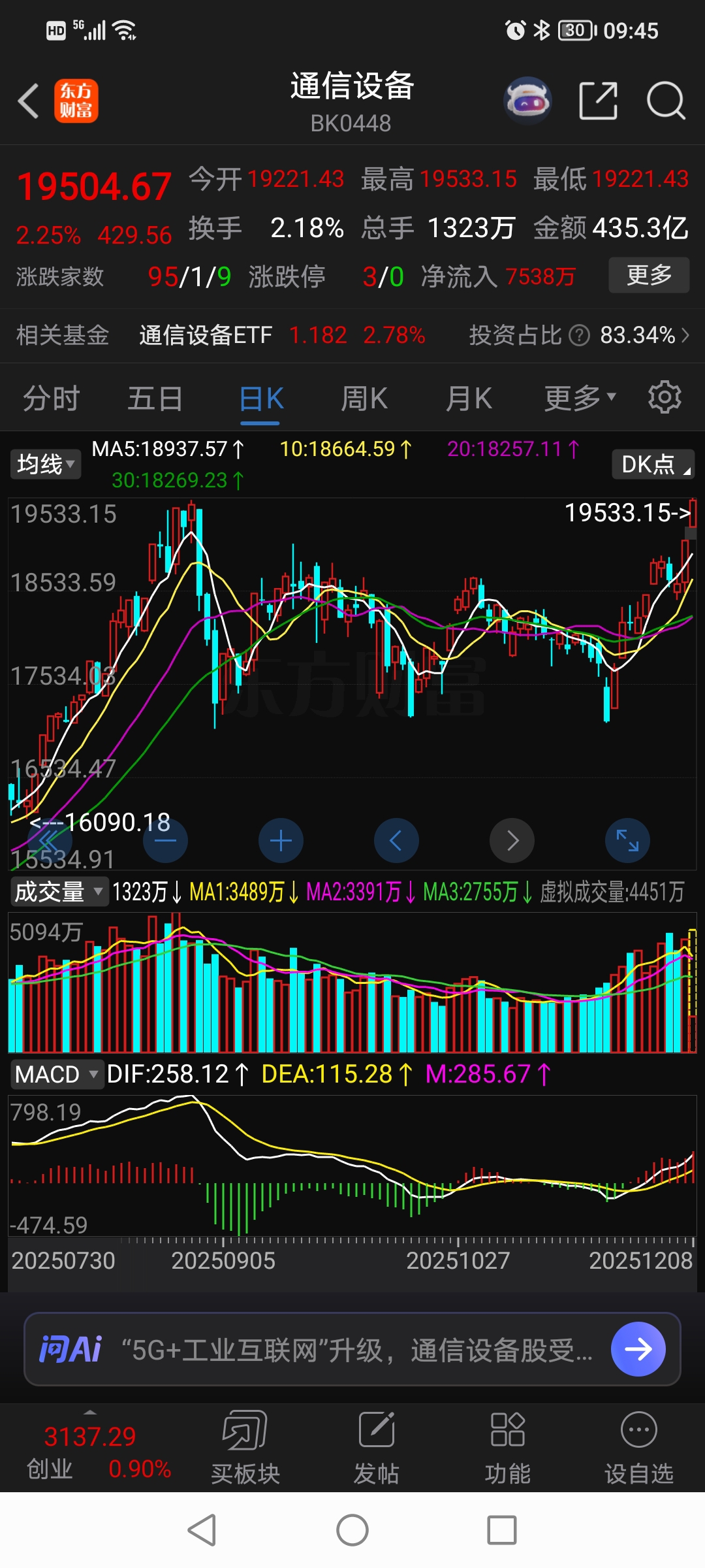 重大利好:通讯设备强势的在次冲上风口,并在创新高。。和大富大贵无关