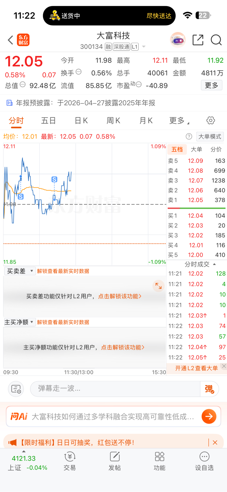 $大富科技(SZ300134)$ 留点底仓就可以 下来再进 目前压力位太大