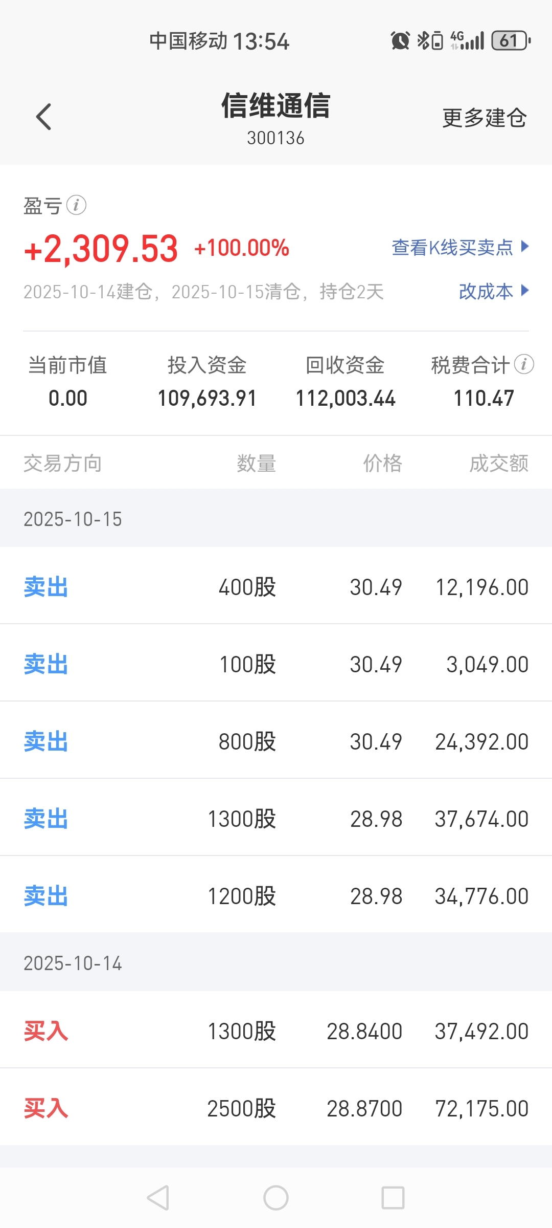 $信维通信(SZ300136)$ 昨天早晨买的,尾盘亏5Q今天早晨卖了七成,刚才拉升卖了3成。赚了2000多。如果昨天尾盘买,今天就发达了。哎散户不容易。