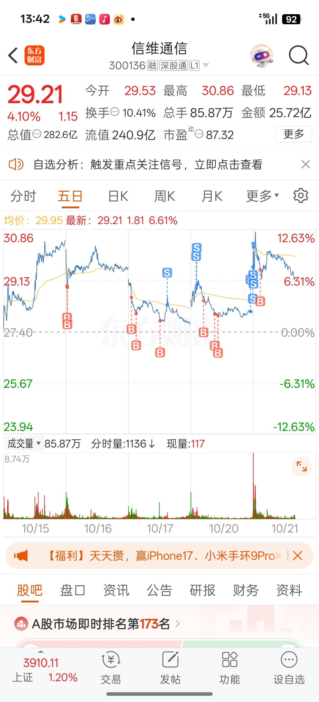 $信维通信(SZ300136)$ 十分感谢信维通信主力,施舍5000大洋零花钱祝你后面大发