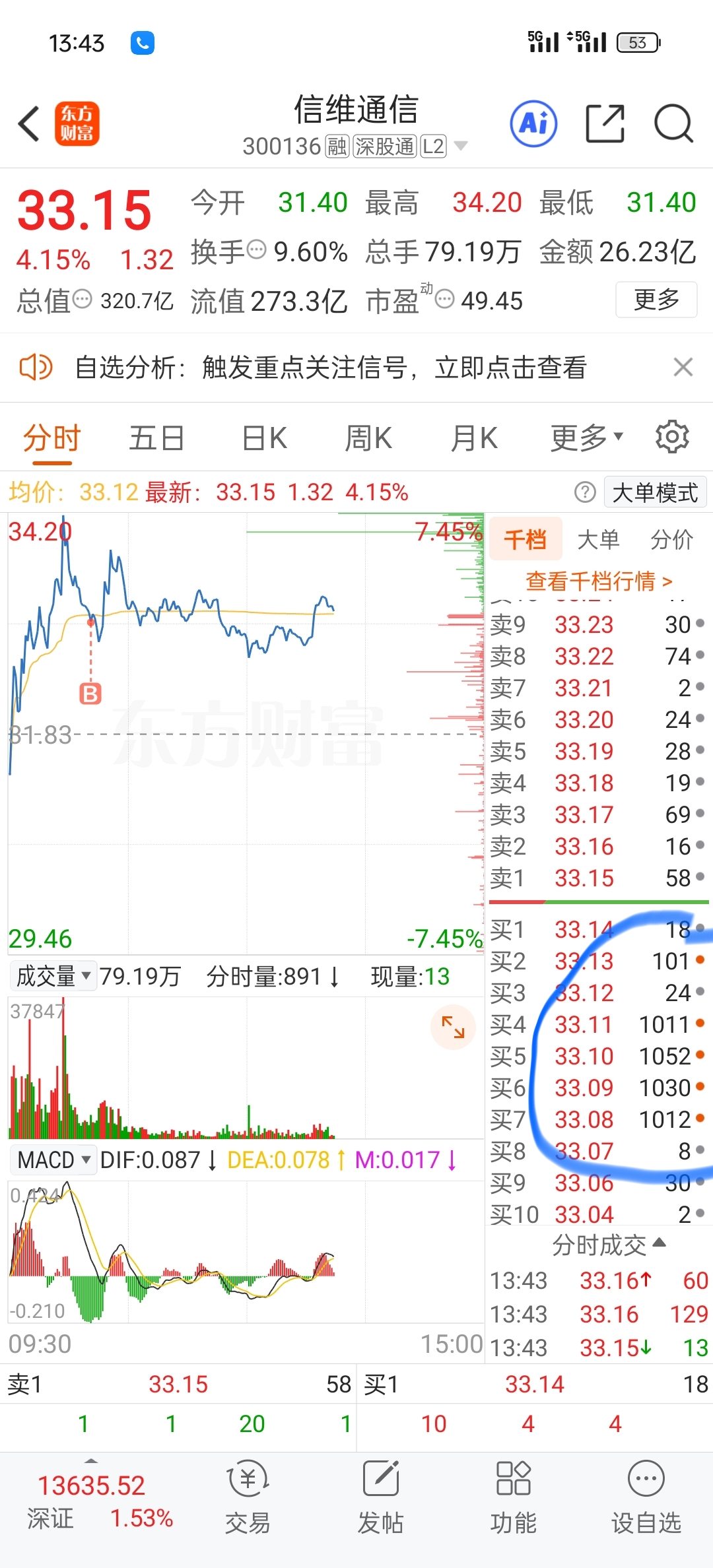 $信维通信(SZ300136)$ 这量化挂单?这是想干嘛?