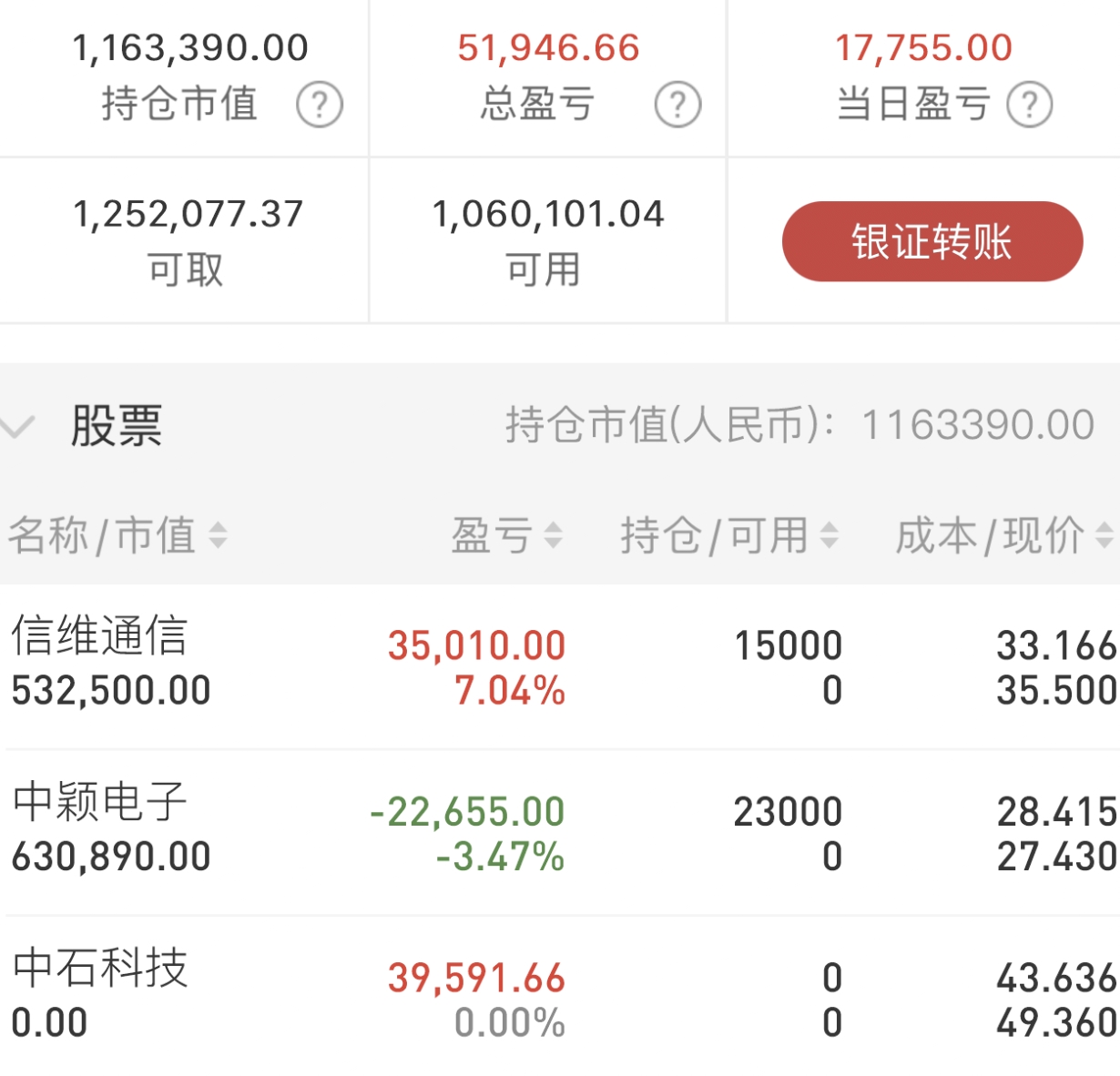 30万投资开启之路10月30日实盘记录300136信维通信进300327中颖电子