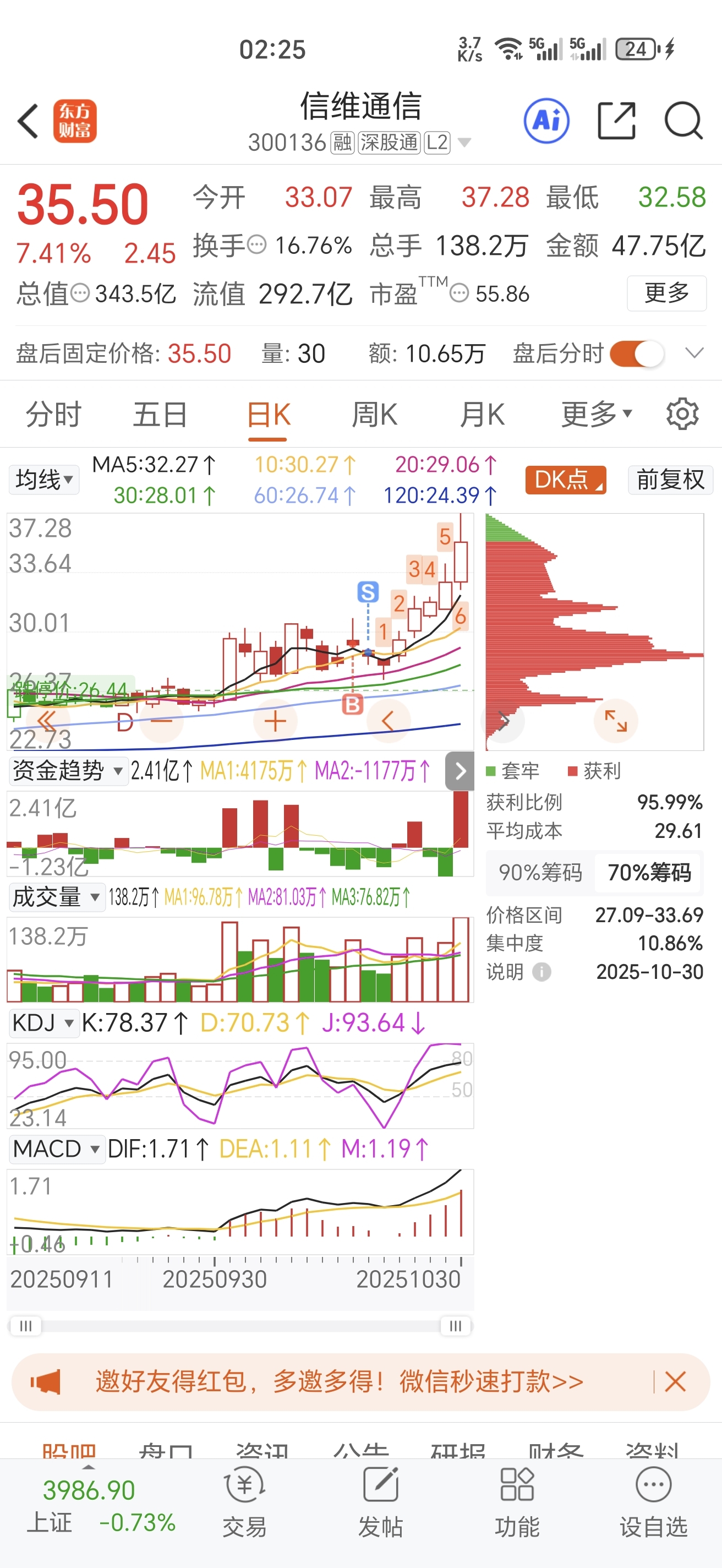 $信维通信(SZ300136)$ 真是不想说,卖的就涨,拿了那么久的长江通信$长江通信(SH600345)$ 啥都都不涨!明天又得吃面