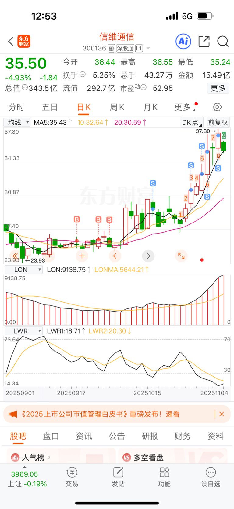 $信维通信(SZ300136)$ 此股应该会到30开始震荡洗盘,横盘应该会拉长震荡时间,快速下杀可取量,慢慢跌的话则需要慢慢等待走平。破30才能取量不然没有任何效果。