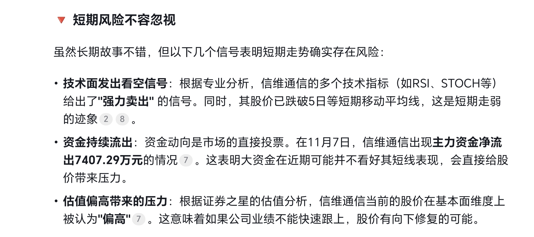 $信维通信(SZ300136)$ 尾盘清了,两根大阴线,确认下跌趋势。看近期走势,结合历史走势,这股调整起来,六亲不认,A杀一点也不留情。近期有可能突破前高,但风险太大了,为了那百分之十分利润,承担大于百分之五十的风险,有点不值。留下的弟兄们发财,祝主力、庄家、散户一起发财虽然走了,依然看好,祝信维业绩爆棚,福泽散户。