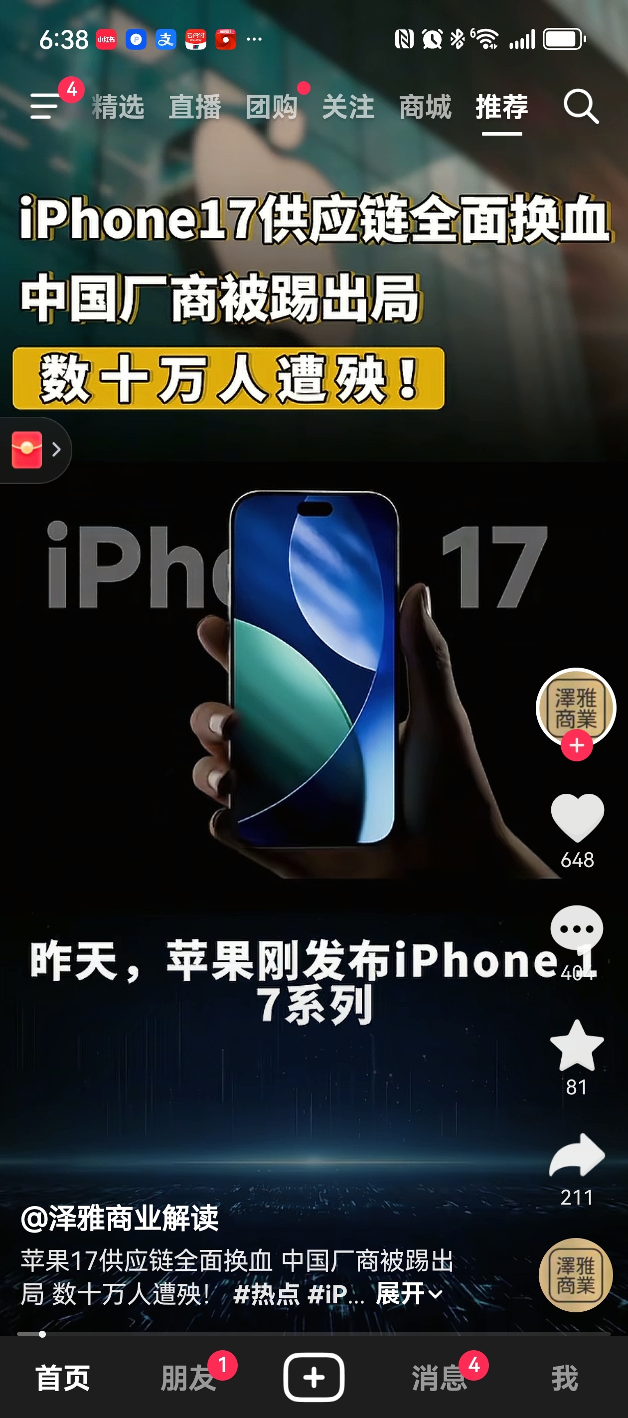 不知道今天小道消息说苹果17要全面清退国产产业链,包括异地为控股公司,保证供应链