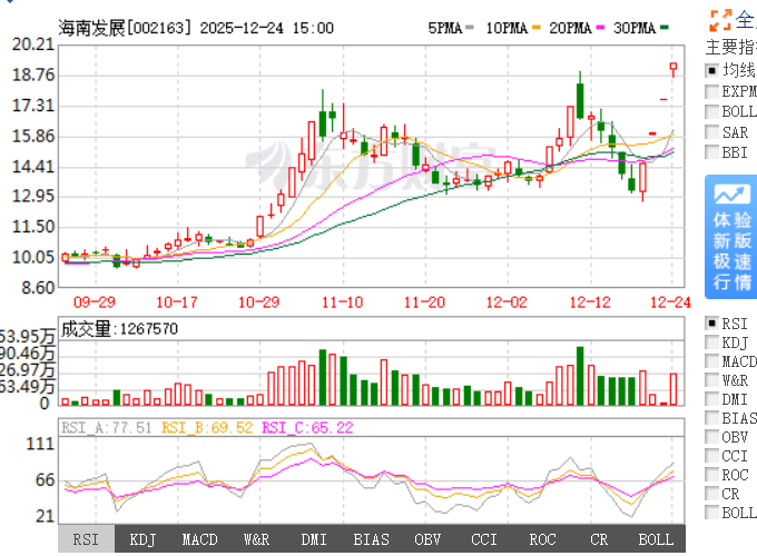 基本面:海控南海发展股份有限公司拟以非公开协议转让方式受让海南海控免税品集团有限公司45%股权。海南海控免税品集团有限公司是2020年12月15日新设立的公司,拟向有权机构申请在海南省经营岛民免税业务。$海南发展(SZ002163)$