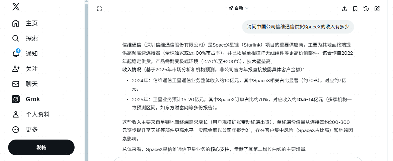 马斯克:信维通信2025年卫星业务预计15-20亿元,其中SpaceX订单占比约