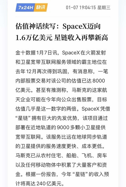 spacex最新估值1.6万亿美元