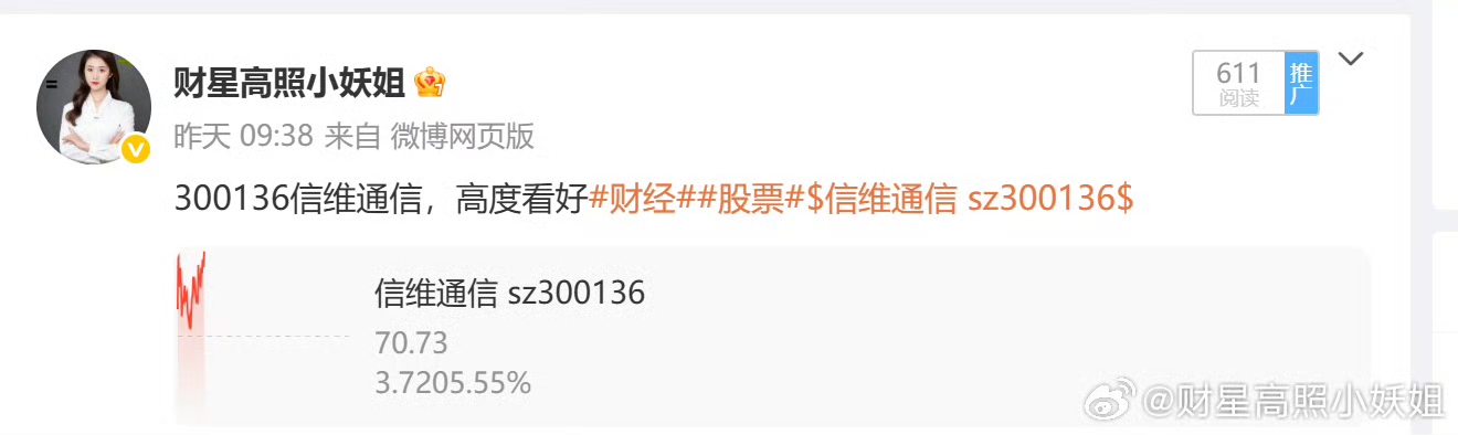 昨日分享的300136信维通信很不错呀,只有炒股的人才知道,最浪漫的情话不是我爱