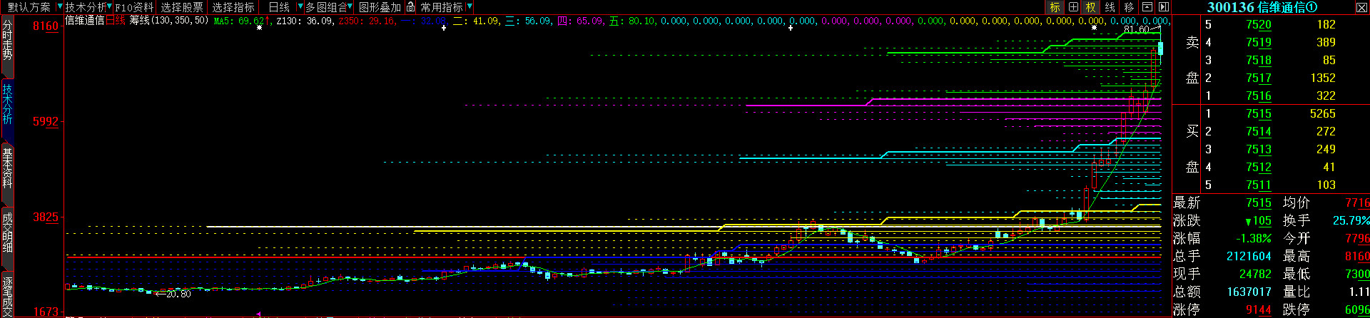 长、短期筹码并列/均匀,走牛标志。