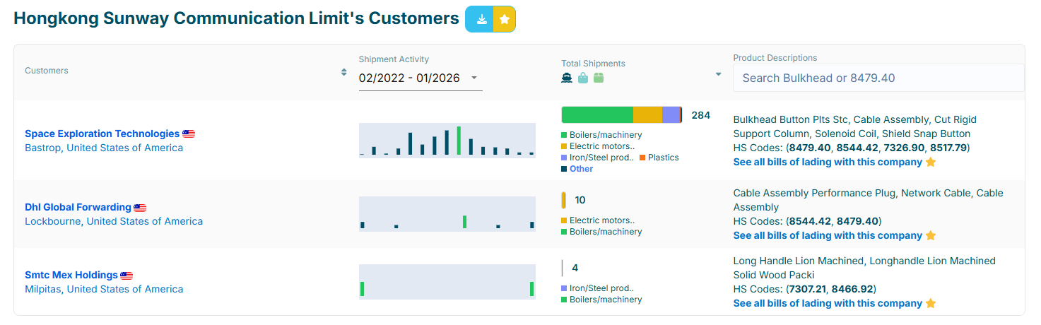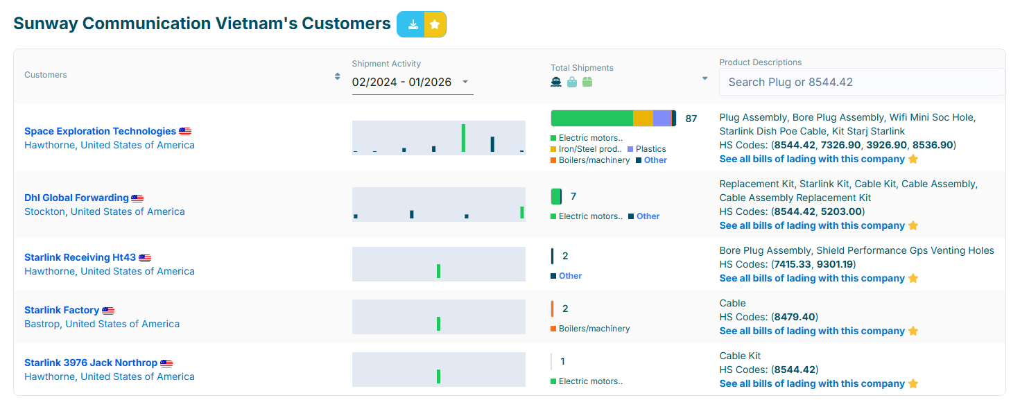随便找了信维通信3家工厂和spacex还有星链的贸易记录,能供应的产品可能比你们