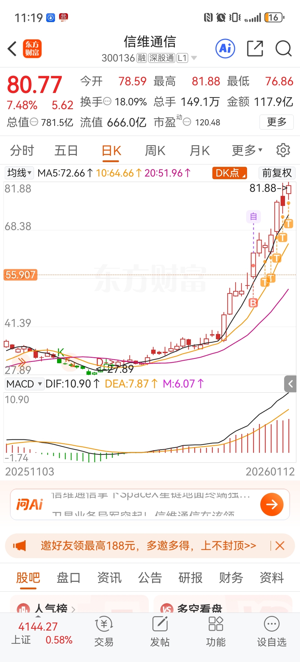 $信维通信(SZ300136)$ 明天一T,任务完成,第一目标100。