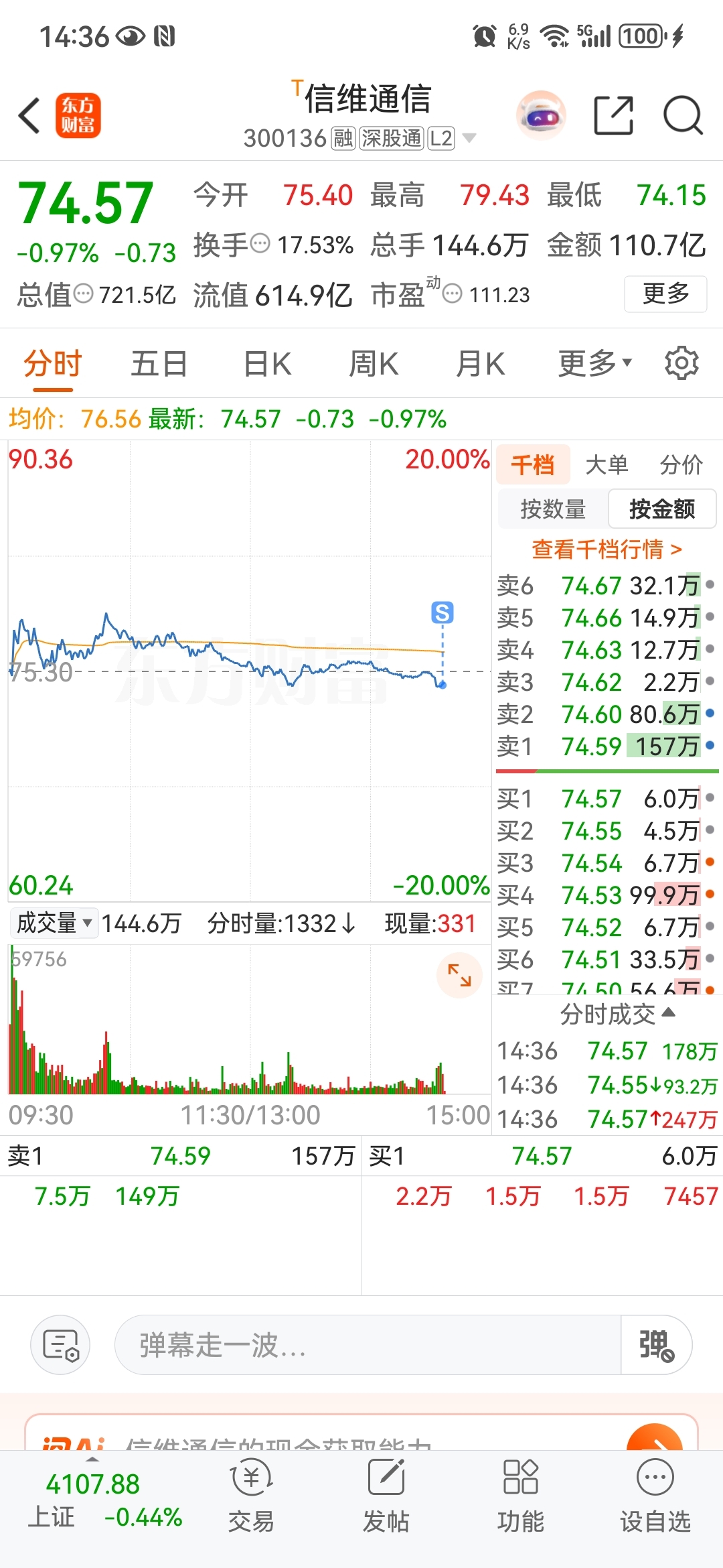 $信维通信(SZ300136)$ 走了,89没走,哎