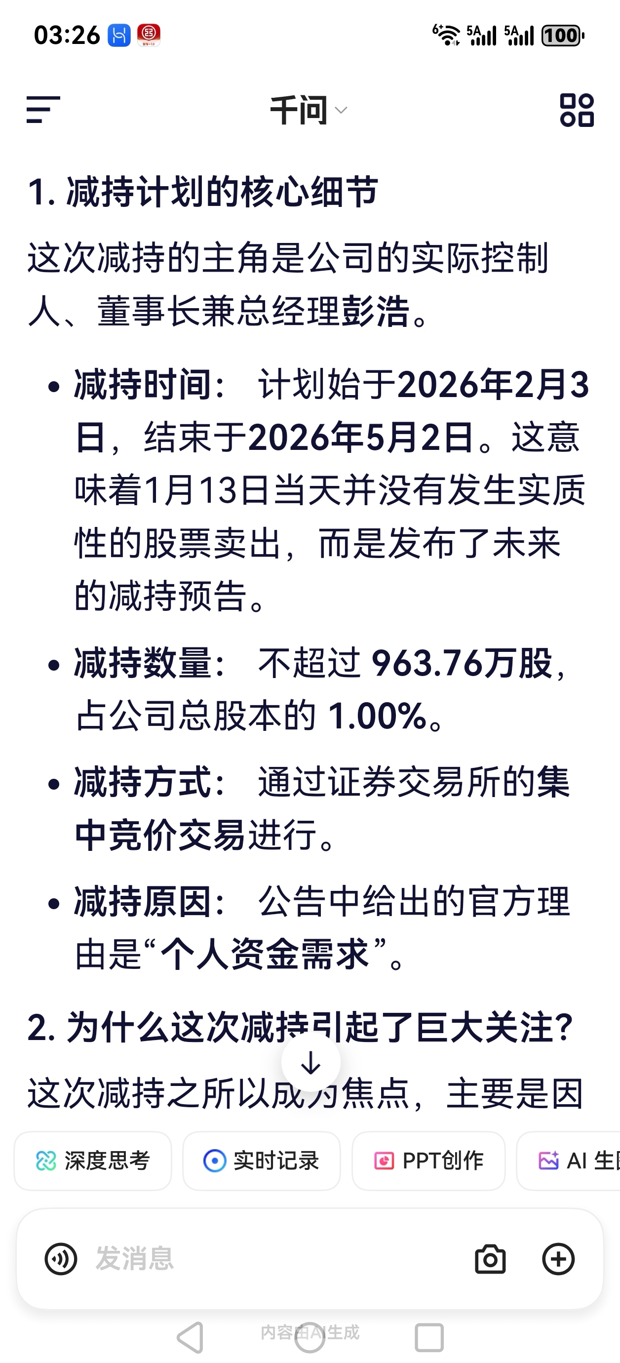 公司董事长减持963万股,认为公司股价过高,必须减持!换句话说不看好公司未来股价
