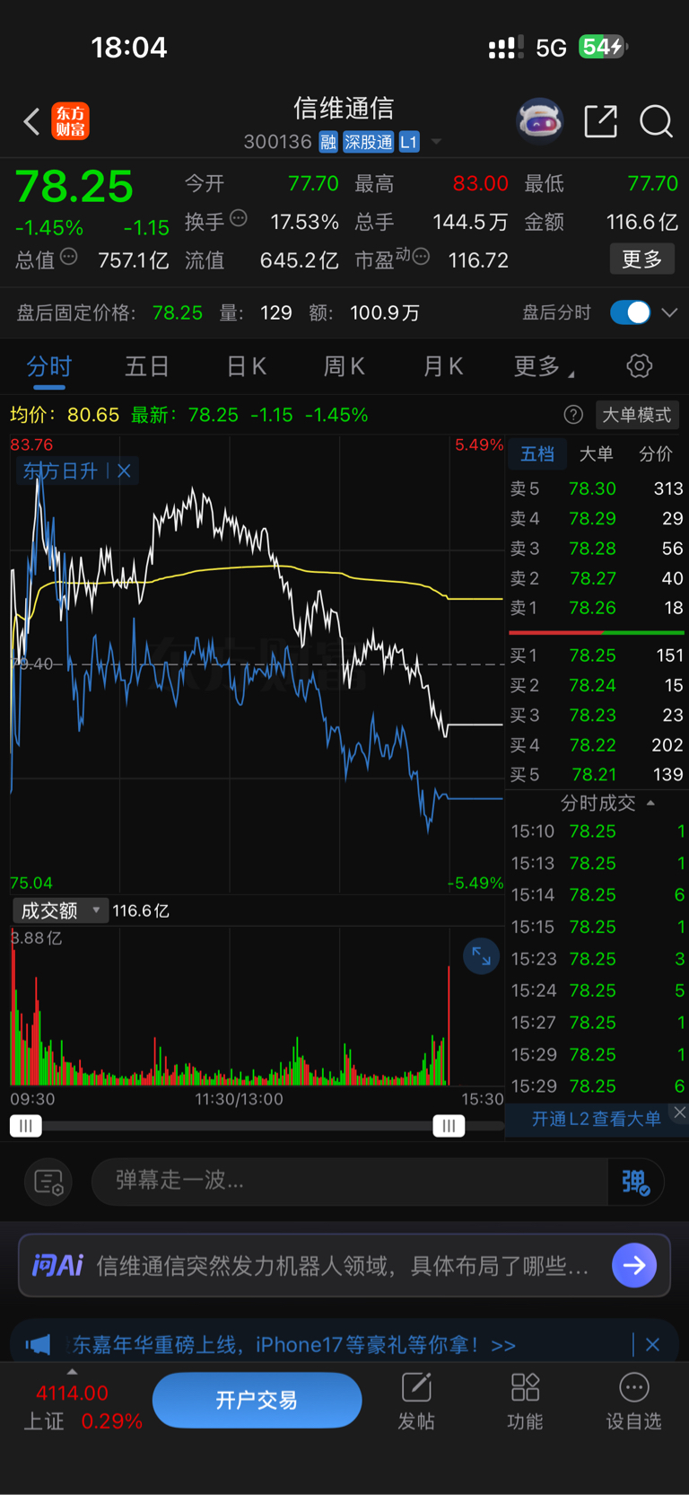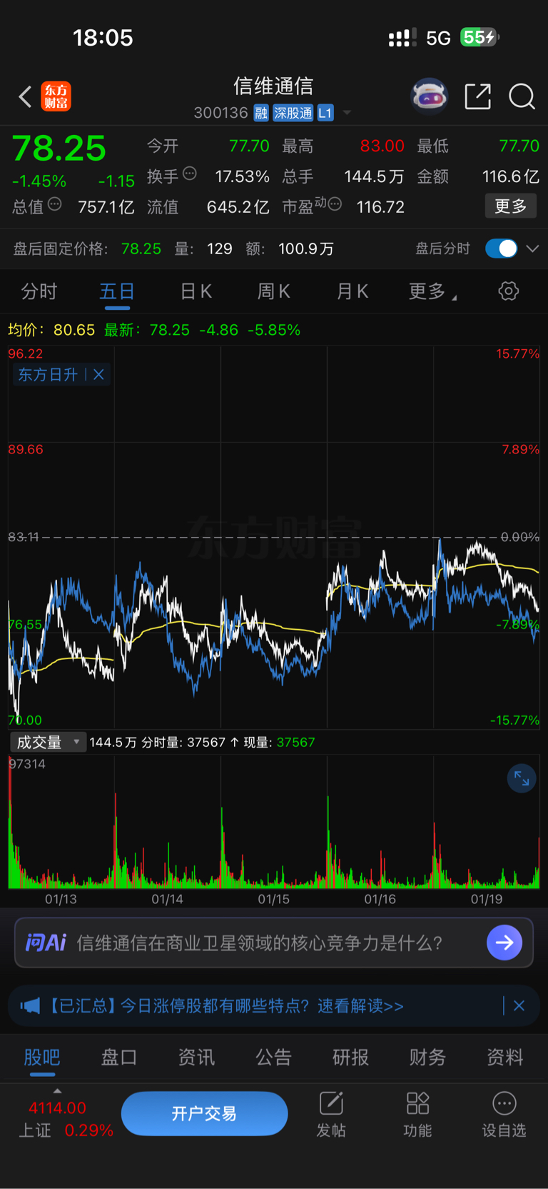 哪位大神给我解释一下,这个东方日升和信维之间的关系?5日线和分时线几乎一样。