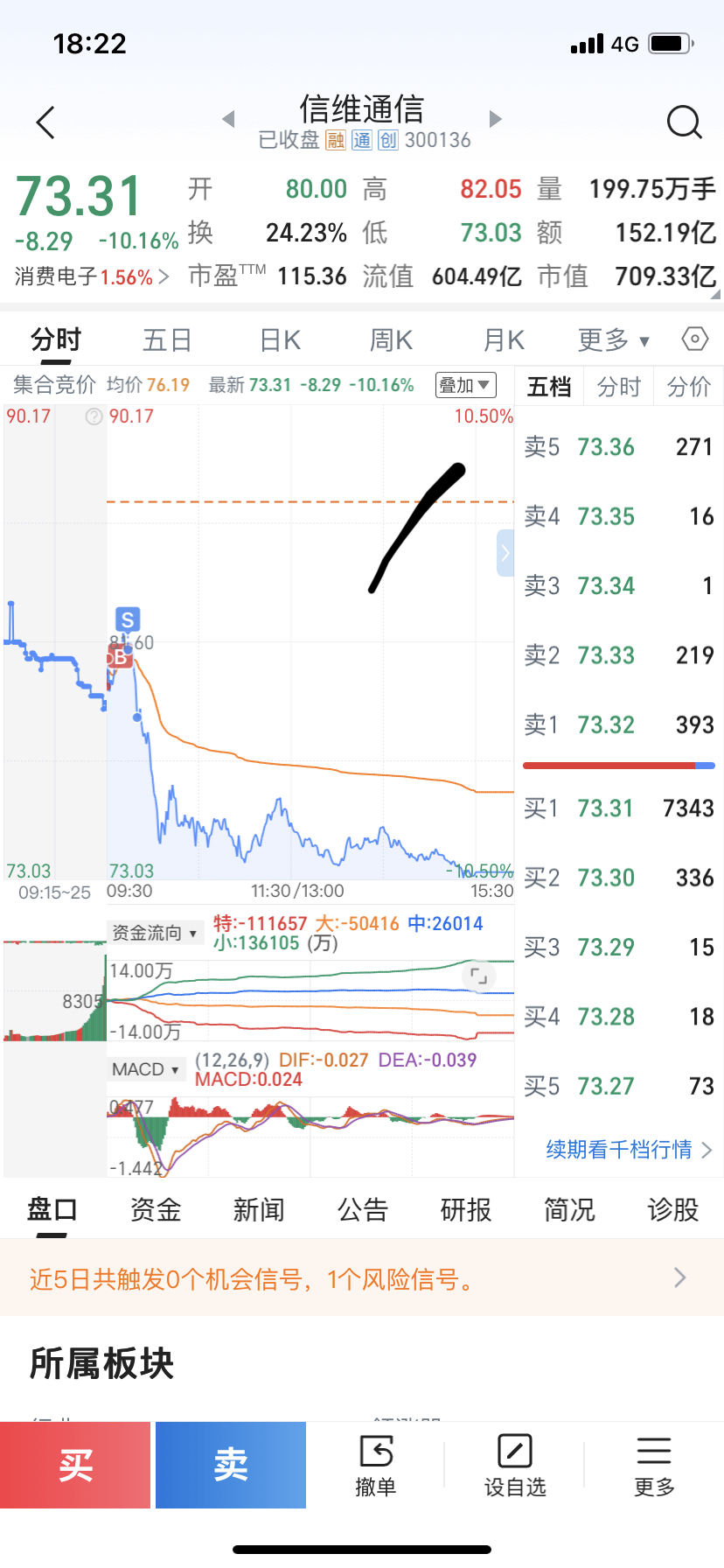 $信维通信(SZ300136)$ 预测到在75-80横盘太久,上不去可能要补跌的风险。早上还是试探性的加了2成,发现不对,立马底仓全部跑了。可惜了2成仓位吃了个跌停!愤怒!明天砸完!短线商业航天不碰了!