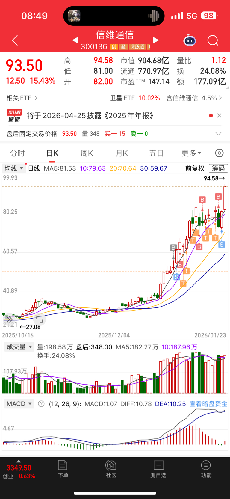 $信维通信(SZ300136)$ 卖飞了,少了15cm,等下次回调。