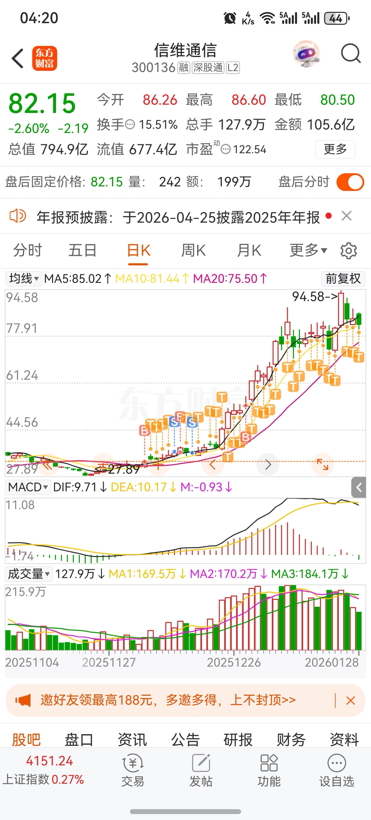 $信维通信(SZ300136)$ 跟着机构在里面做T不好吗,里面全是大机构,目前还有一千股,慢慢T