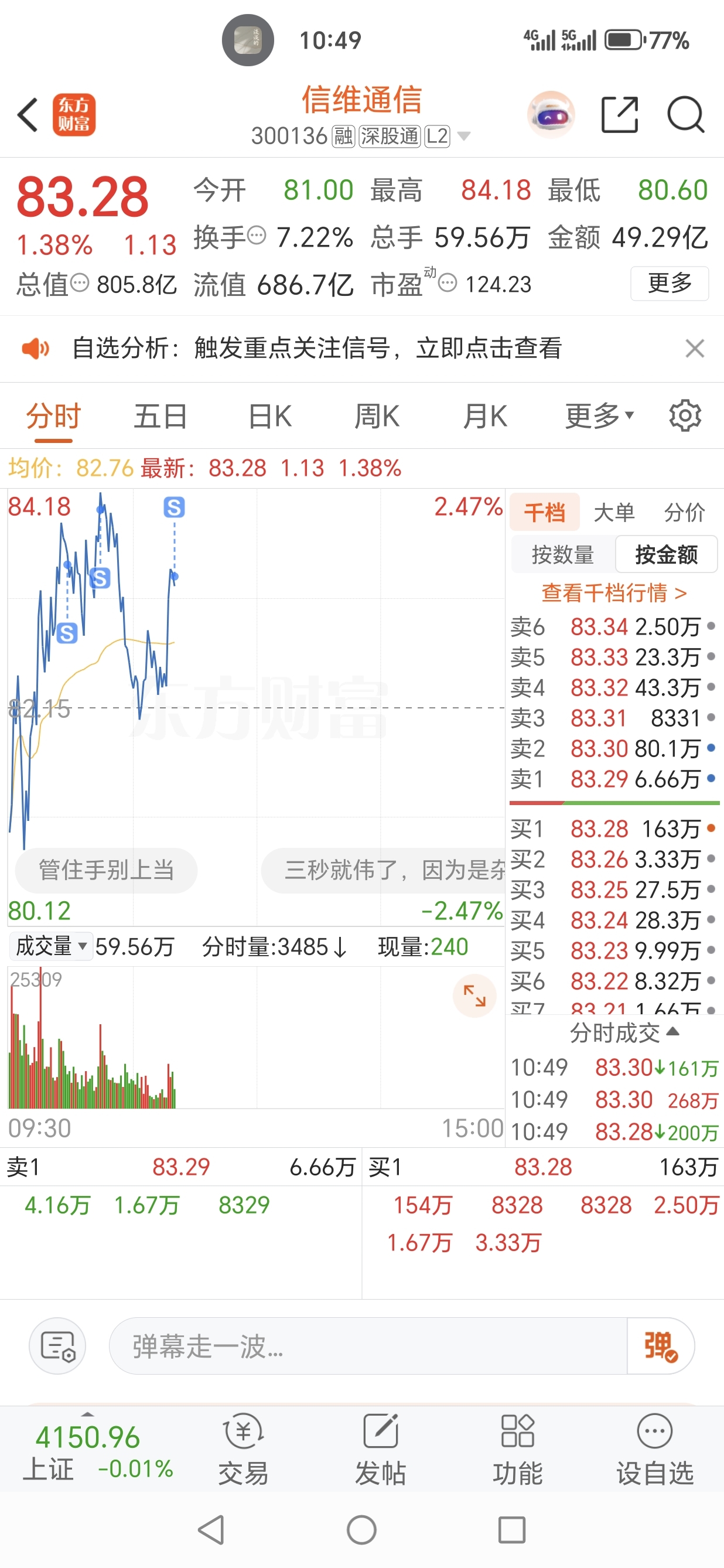 $信维通信(SZ300136)$ 这货今天就这样了,赚了再说,谢谢主力