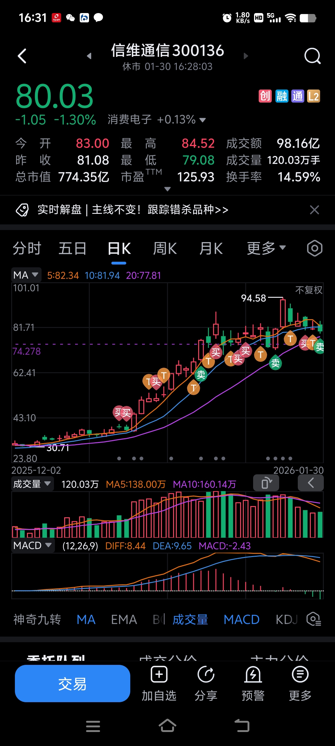 $信维通信(SZ300136)$ 走了。走了