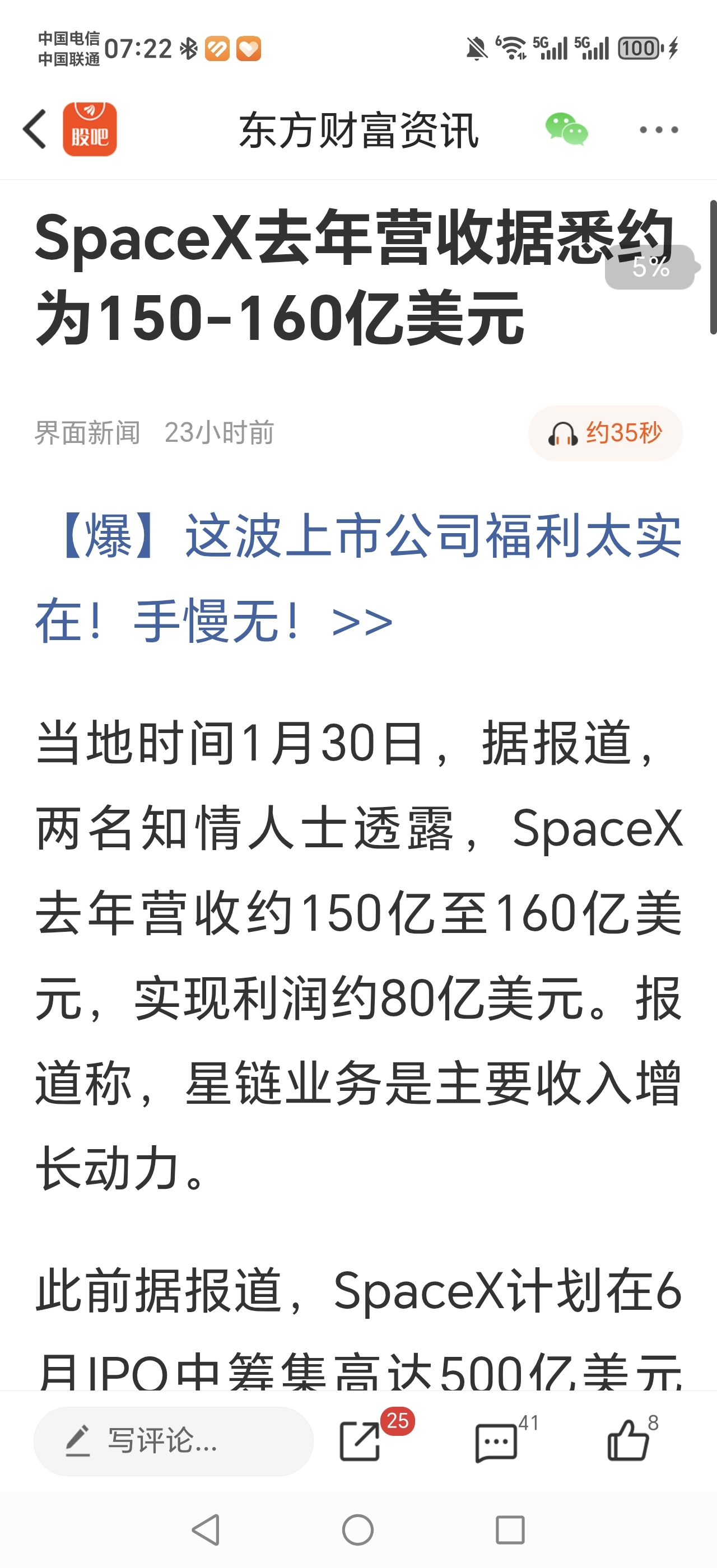 spaceX已经大幅盈利了,欧洲开始禁止出口卫星天线,马斯克又要发100万颗卫星