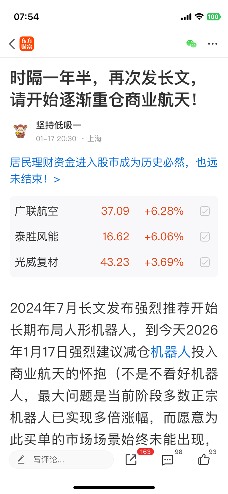 郑重声明:用户在财富号/股吧/博客等社区发表的所有信息(包括但不限于文字、视频、音频、数据及图表)仅代表个人观点,与本网站立场无关,不对您构成任何投资建议,据此操作风险自担。请勿相信代客理财、免费荐股和炒股培训等宣传内容,远离非法证券活动。请勿添加发言用户的手机号码、公众号、微博、微信及QQ等信息,谨防上当受骗!