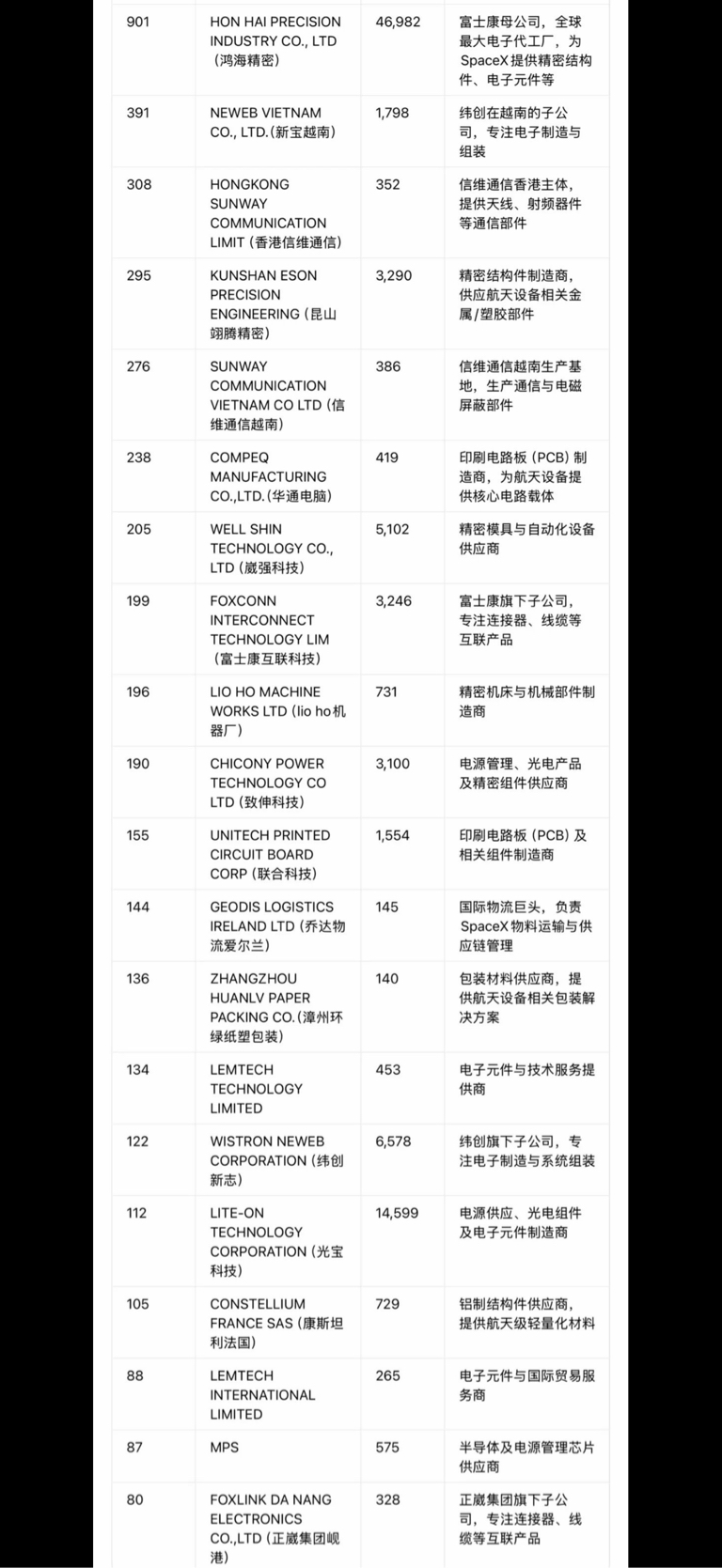 $信维通信(SZ300136)$ 有记录供货星舰的供货商
