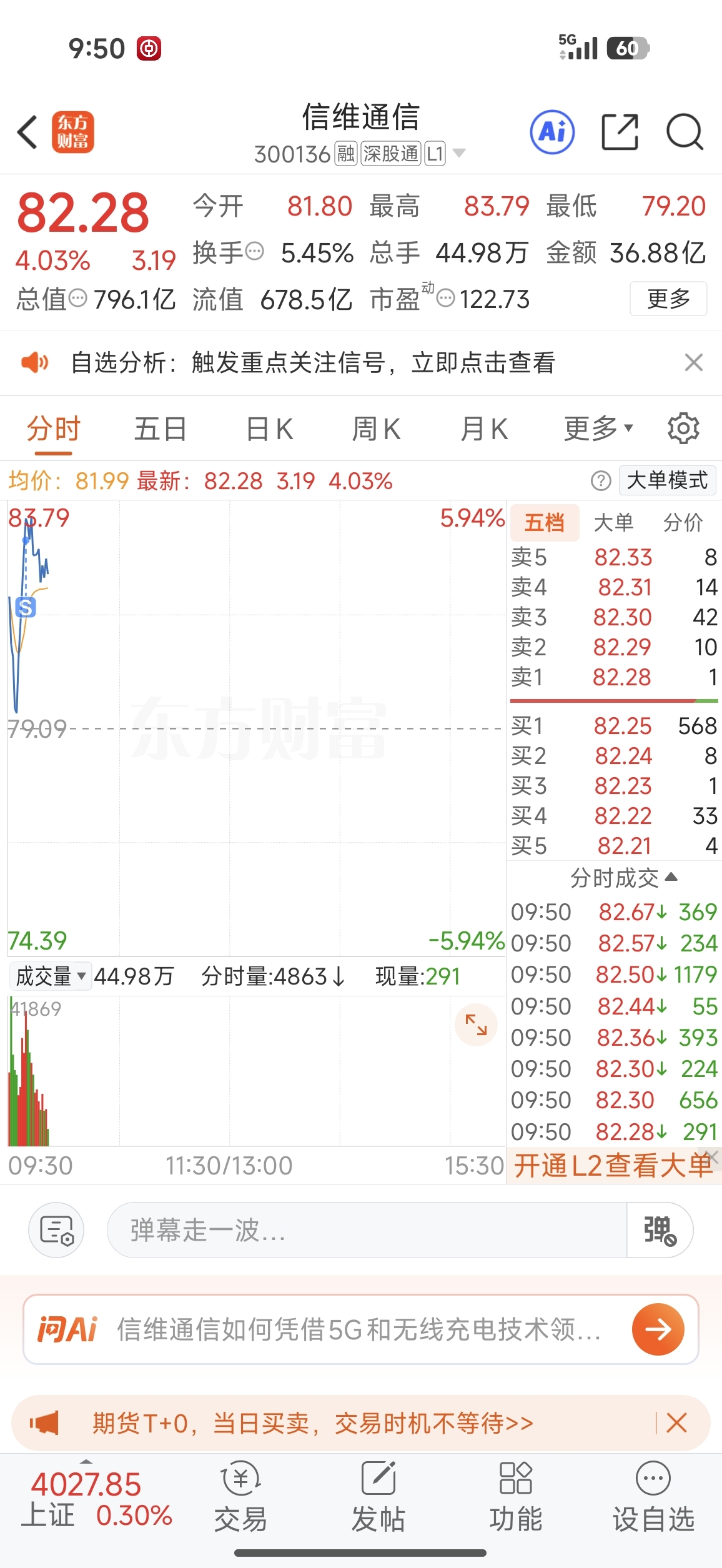 $信维通信(SZ300136)$ 今天学聪明点,冲高走了,尾盘再买回。