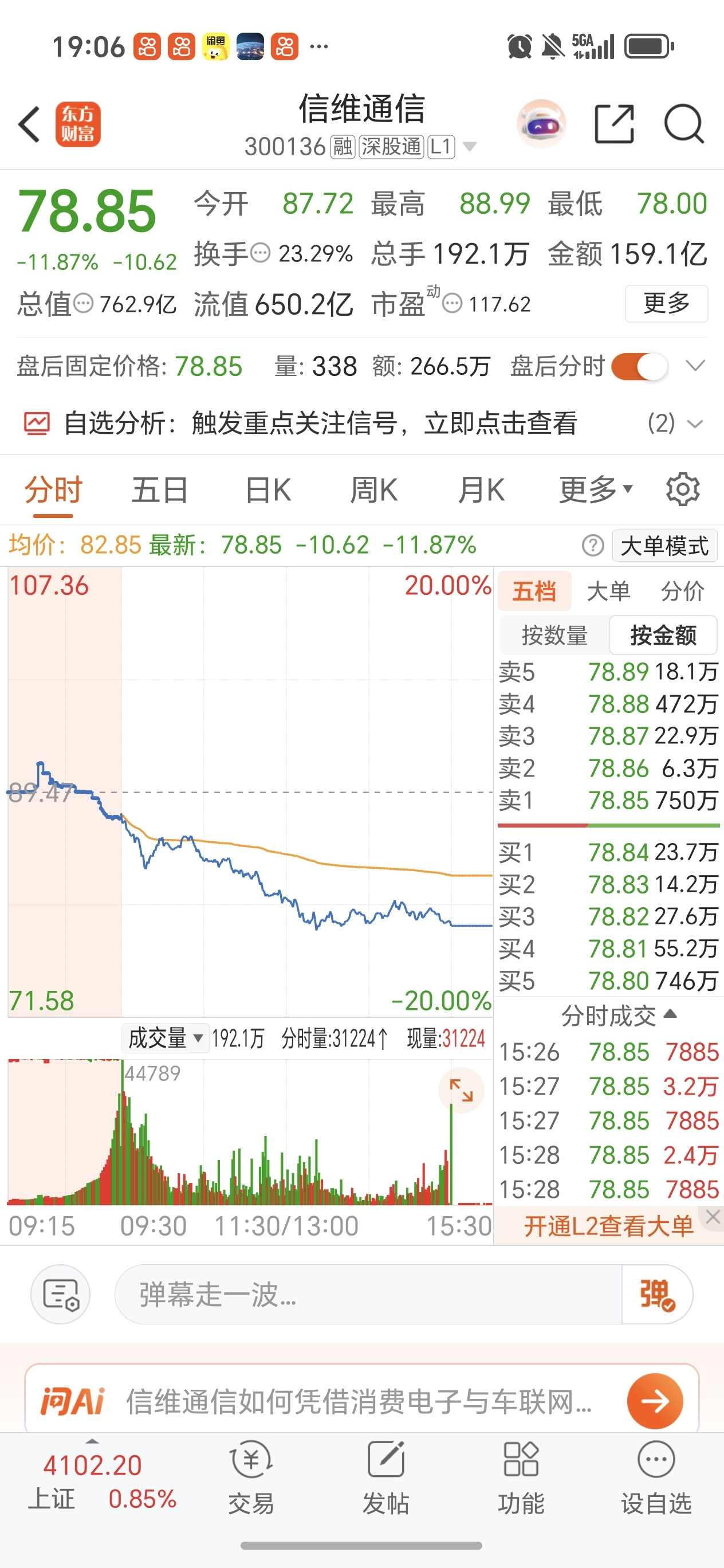 $信维通信(SZ300136)$ 一个月天天这种分时图,老虎鸡程序