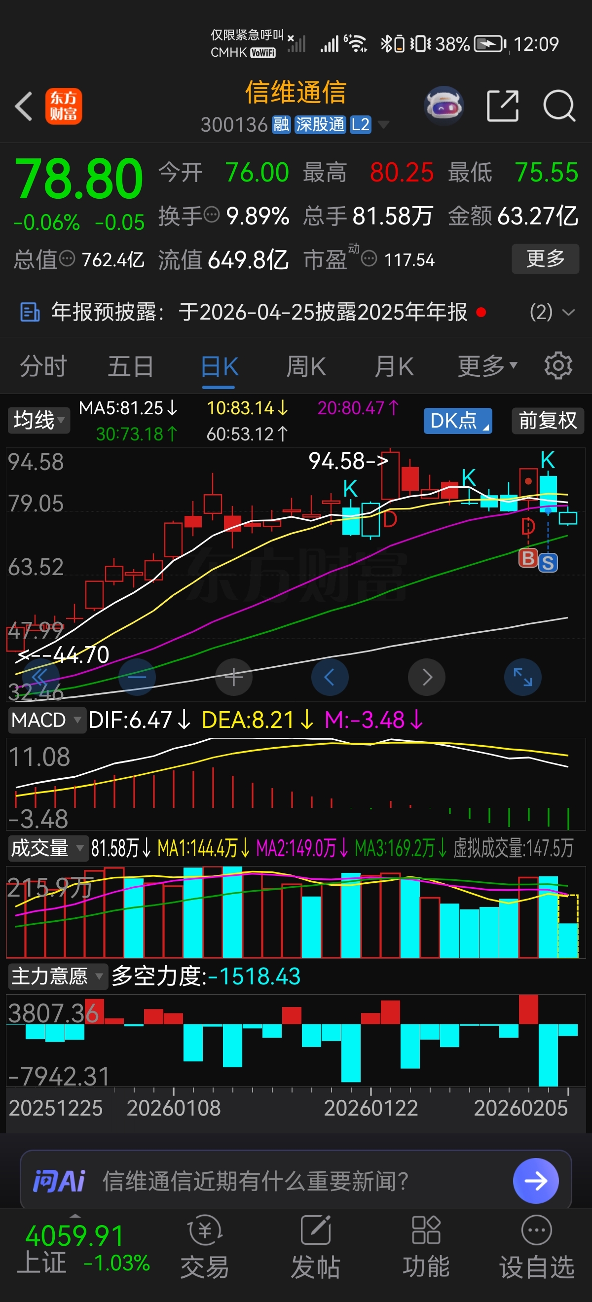 $信维通信(SZ300136)$ 趋势走坏,不要有任何幻想,昨日领跌品种,带坏整个商业航天,完全没有修复迹象,当断不断,必受其害!