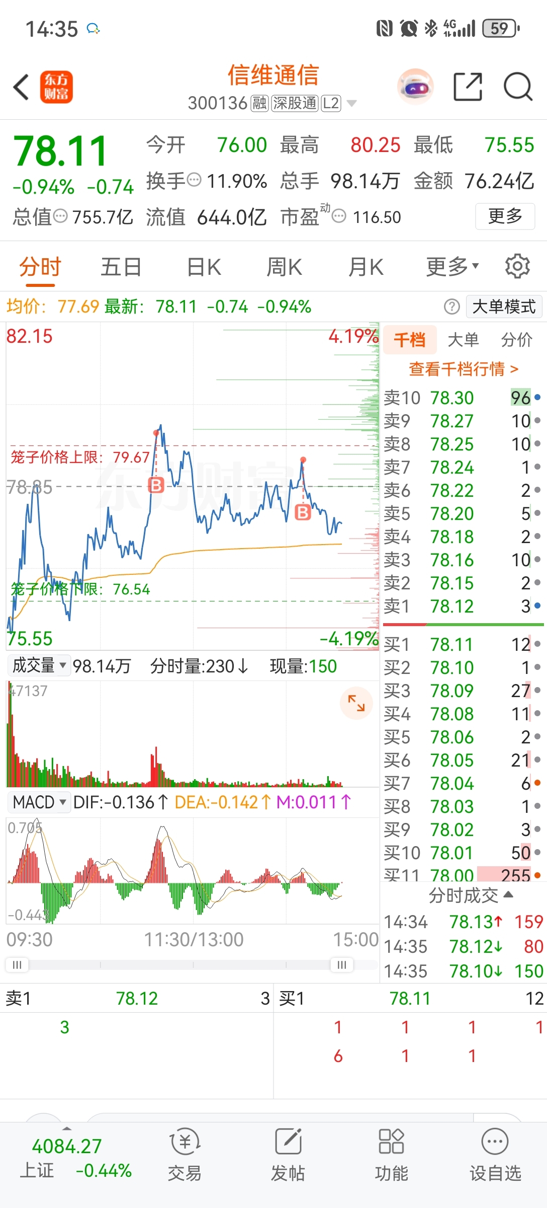$信维通信(SZ300136)$ 大爷的,都买在了双峰处…明天能不能见红