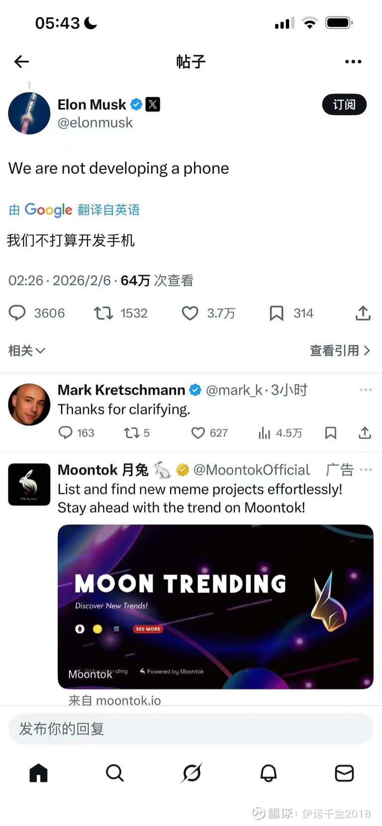 马斯克已经澄清了