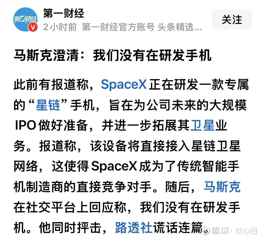 $信维通信(SZ300136)$ 马斯克说不准备研发手机