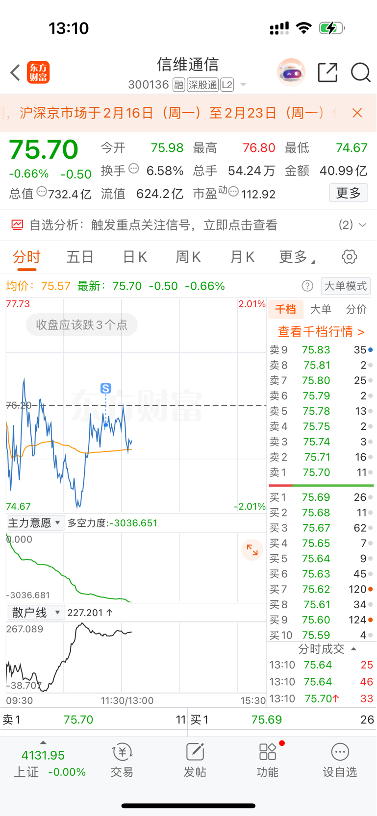 $信维通信(SZ300136)$ 卖掉你是开心的,尾盘如果绿选择在接回