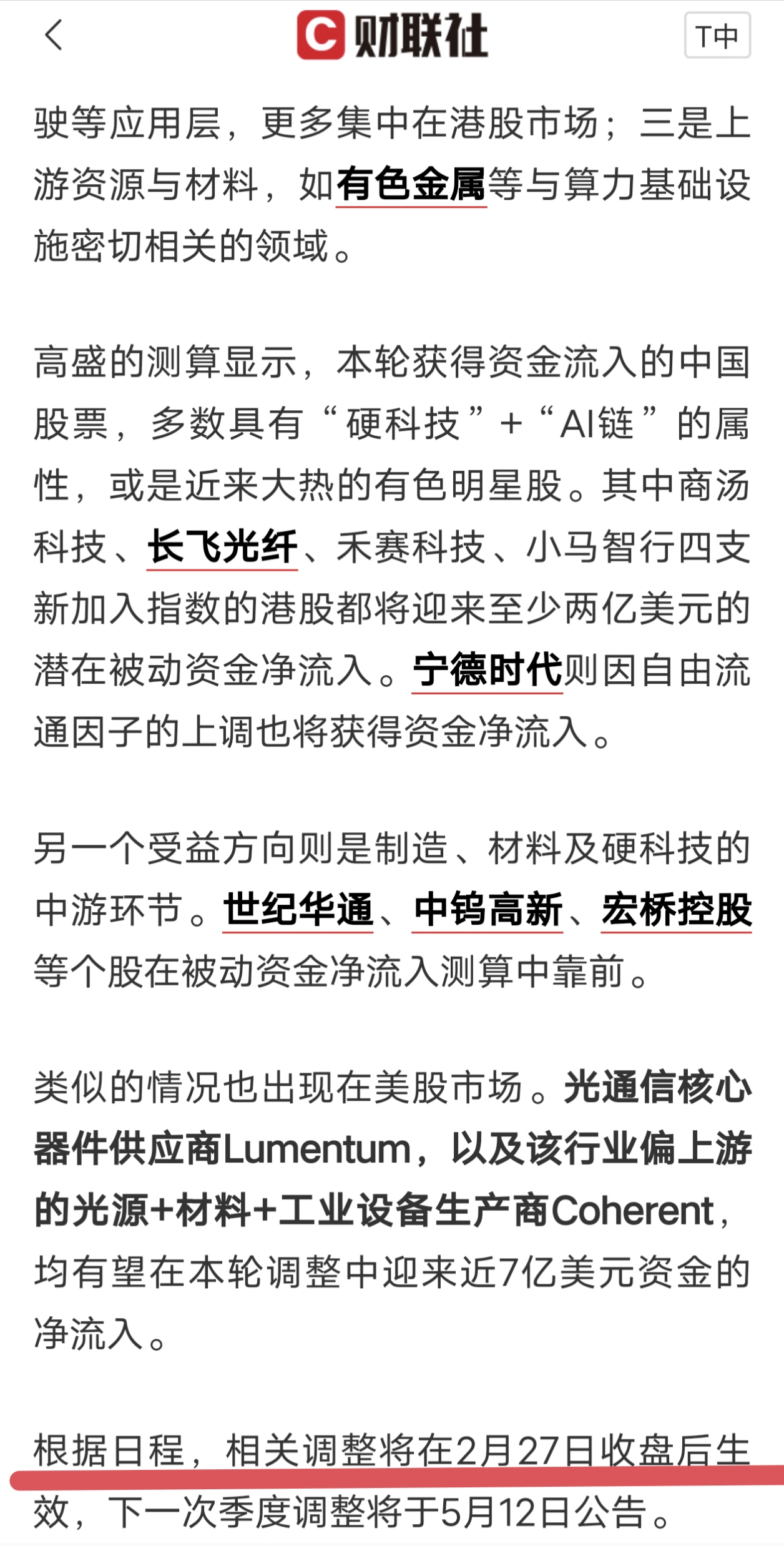 MSCI调整将在2月27日收盘生效,被动增量资金来了