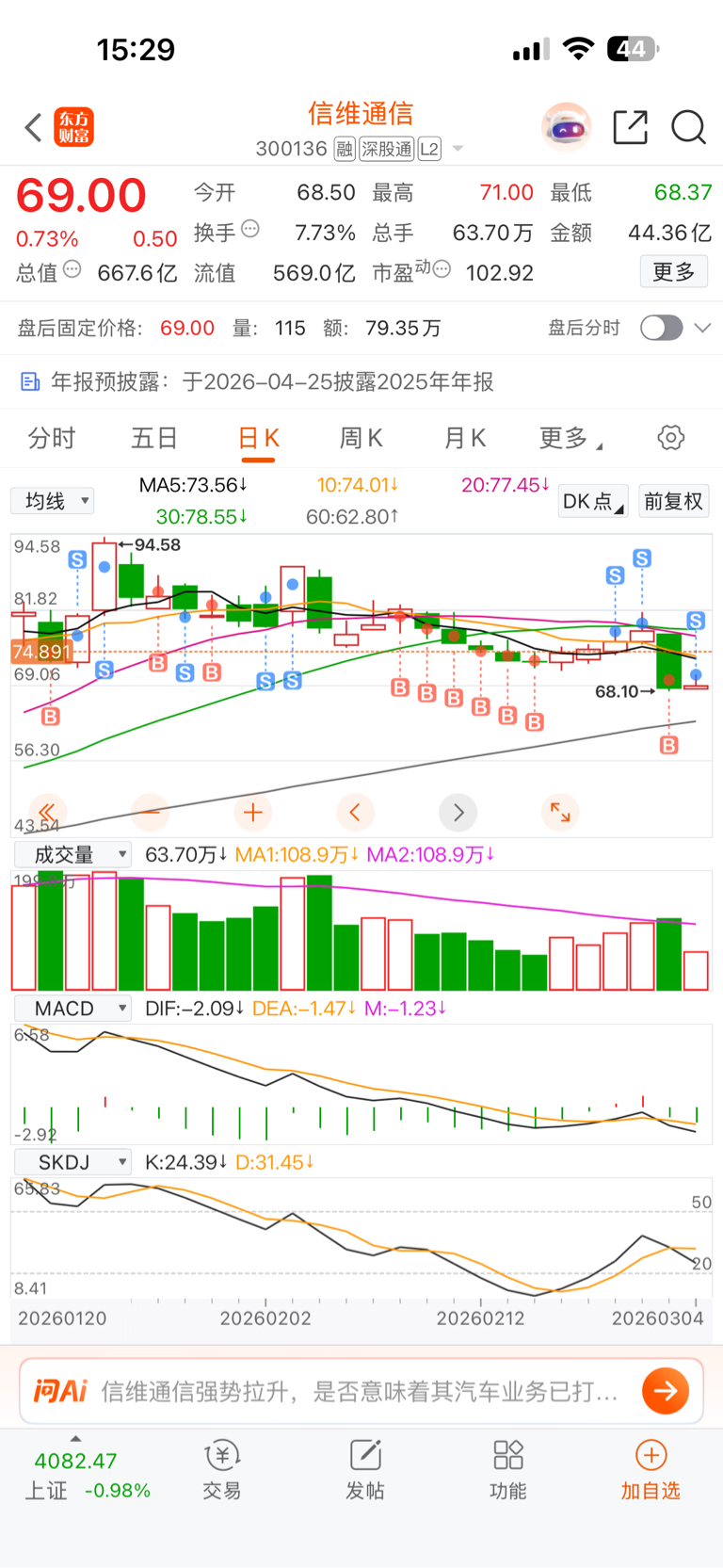 $信维通信(SZ300136)$ 拉垮的走势