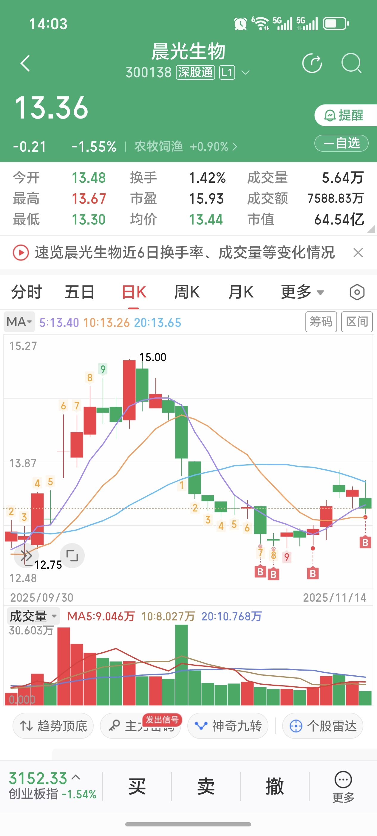 $晨光生物(SZ300138)$ 实操才是真理,连仓位都没有的人一天天胡说八道啥呢。13.32我又加仓了。是不好奇我有利润不卖一路买?原因现在它缩量上行。啥时候放量下跌才是清仓的时候。